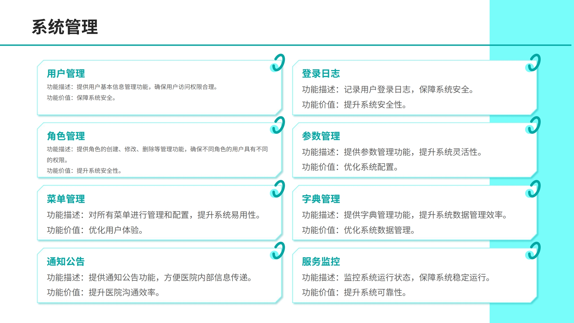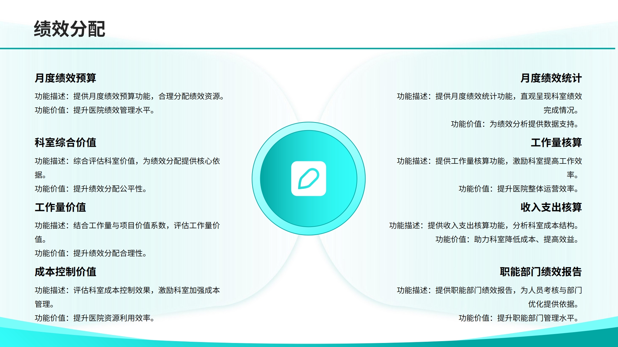 系统设计力求简便实用,使用户在得到高效率的软件帮助的前提下将更多的精力投入到管理策略的制定和具体问题的解决上,医院绩效管理系统是专为医疗机构设计的综合性管理软件,旨在通过科学的绩效管理,提升医院运营效率,优化资源配置,增强医院竞争力。