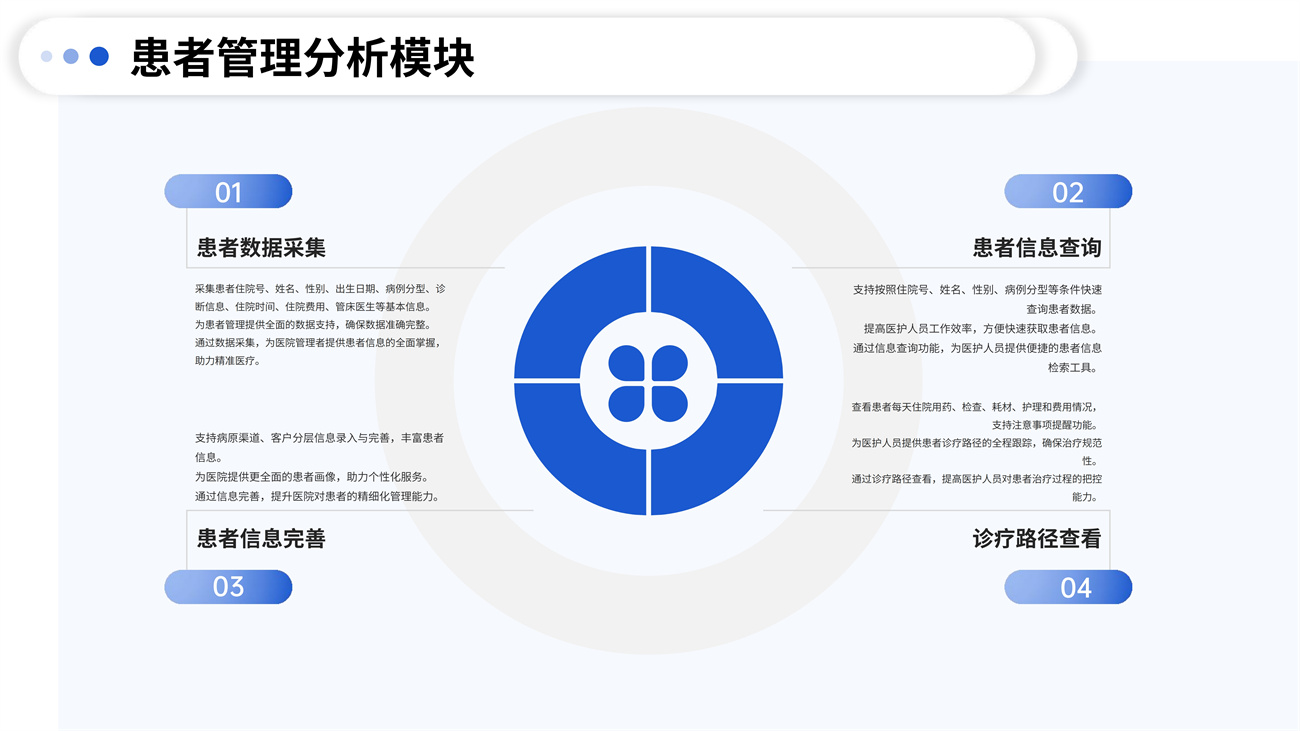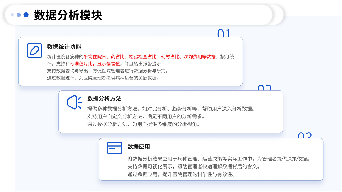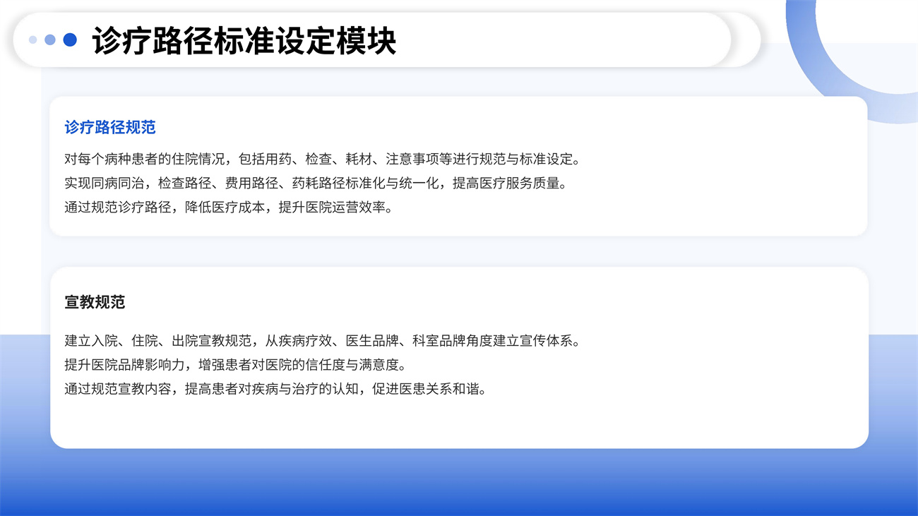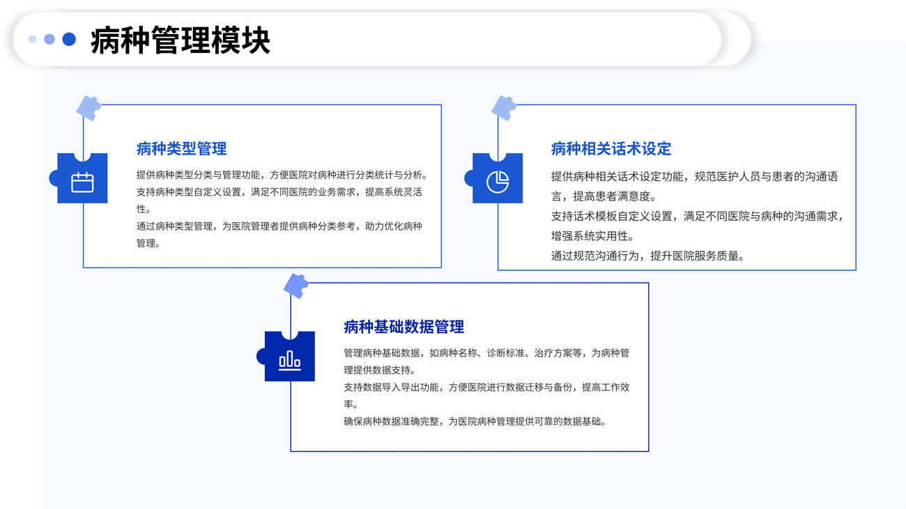 病种运营管理系统,基于数据驱动和分析的病种运营管理平台,病种运营系统是为医疗机构提供病种管理、运营评价、数据分析等一站式解决方案的平台,助力医院提升病 种管理水平和运营效率。系统通过整合病种相关数据,实现对病种全生命周期的管理,为医院管理者提供决策支持,推动医院高质量 发展。